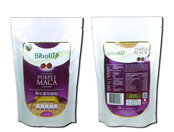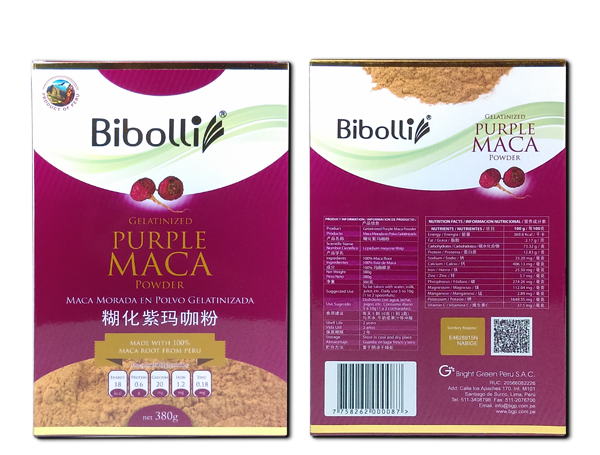 Maca en polvo Morada Gelatinizada de 380 gramos en Caja.