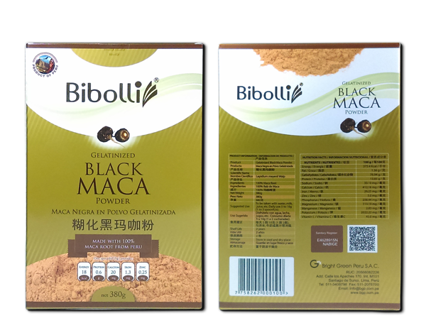 Maca en polvo Negra Gelatinizada de 380 gramos en Caja.