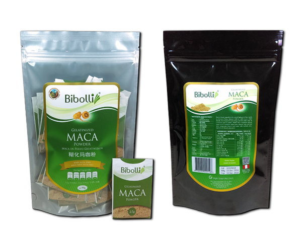 Sachet de Maca en polvo Amarilla Gelatinizada de 2.5 gr x 48 Unidades en caja.